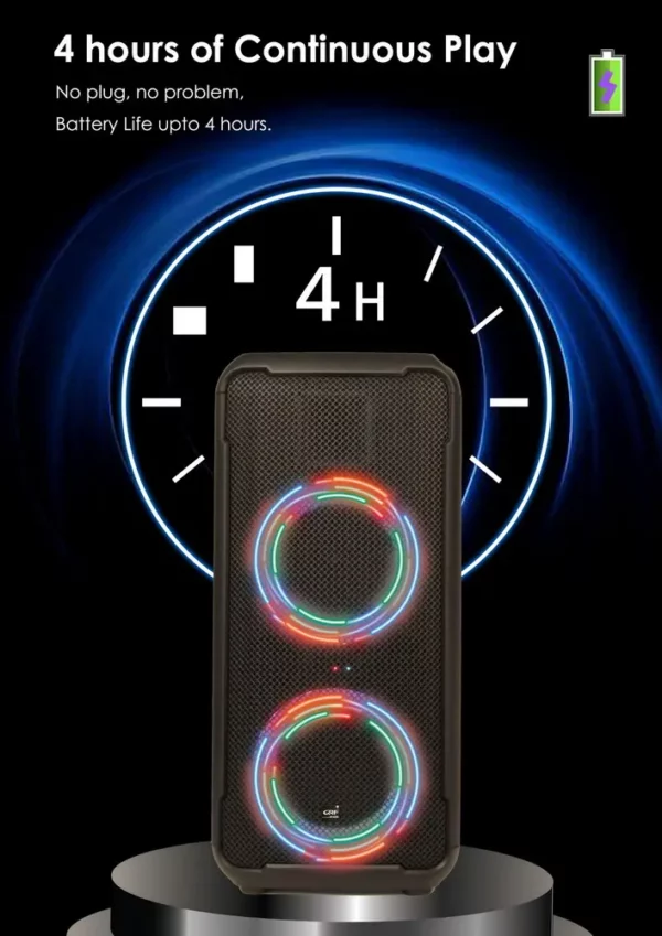 Furthermore, the inclusion of a long-lasting battery ensures that your music journey remains uninterrupted for hours on end. Immerse yourself in the rhythm and melodies that resonate with your soul, and let this powerful speaker be your trusted companion throughout your day.